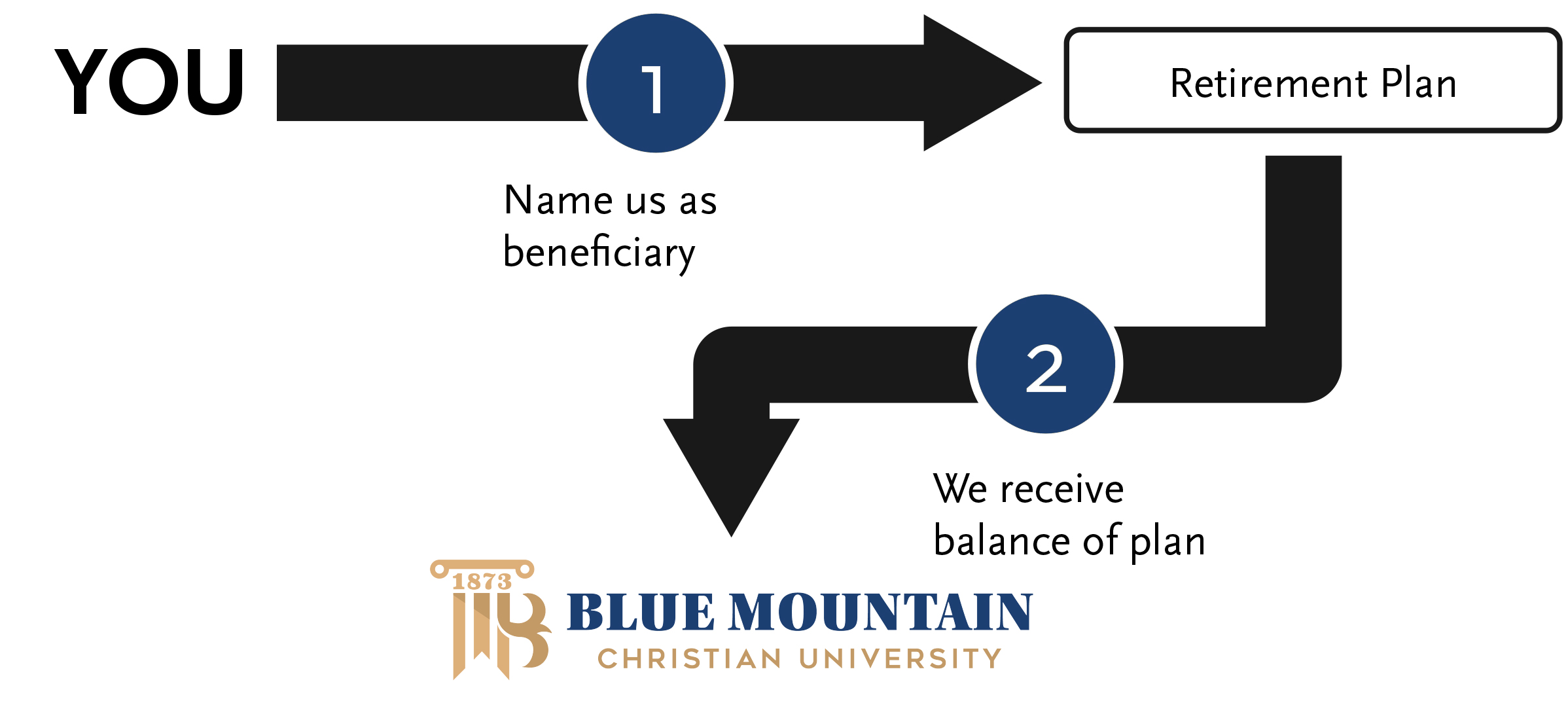 You can simply name Blue Mountain Christian University as a beneficiary of your retirement plan to shape students to serve Christ for a lifetime.